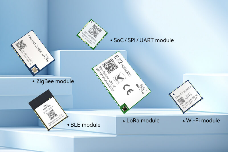 EBYTE has a complete industrial chain from R&D to production, wholesale and sales, focusing on creating low-power wireless module products for you. Our product line is rich and diverse, including LoRa modules, WiFi modules, Zigbee modules, Bluetooth modules, and SPI/SOC/UART, 4G/NB/GPRS/GNSS/CAN and other wireless module series, which can meet various needs in your project.